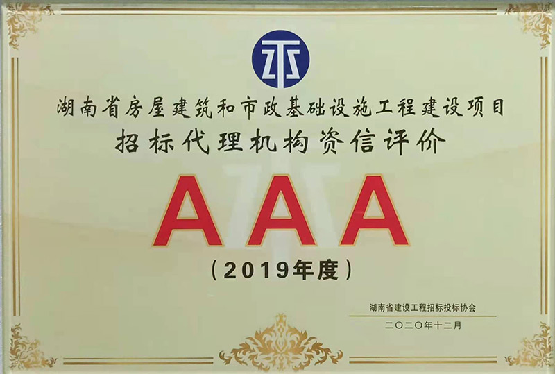湖南省建设工程招标投标协会信用评价AAA荣誉