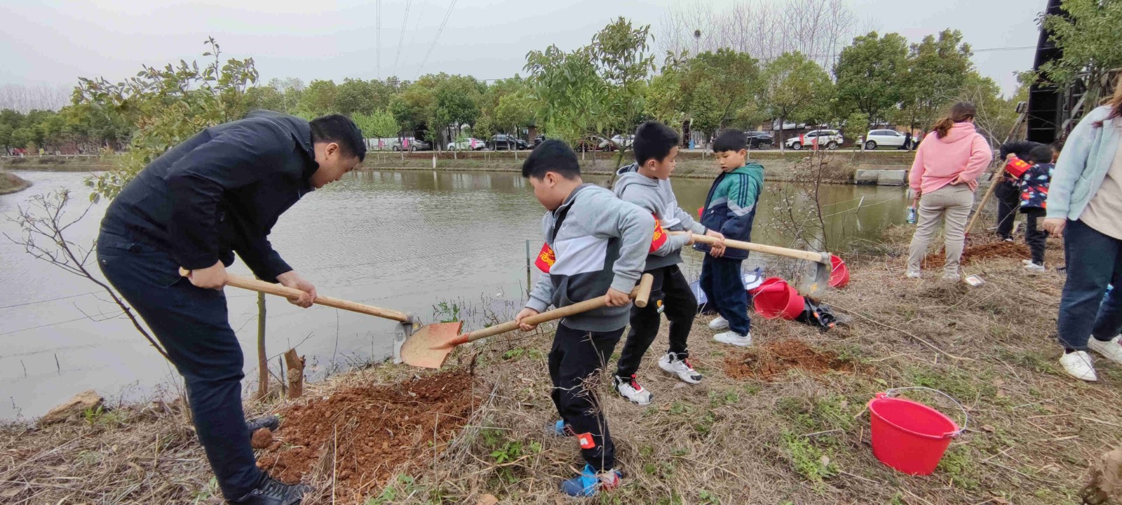 春风催新绿,植树正当时。植树现场,大家热情洋溢、干劲十足,相互协作、有条不紊。在党员们的带领下,志愿者们挥锹铲土、扶苗填坑、踏土夯苗、浇水培土……大家分工明确,各司其职,默契配合。热火朝天的植树场景为初春增添了几分生机,成为了春日里一道亮丽的风景。